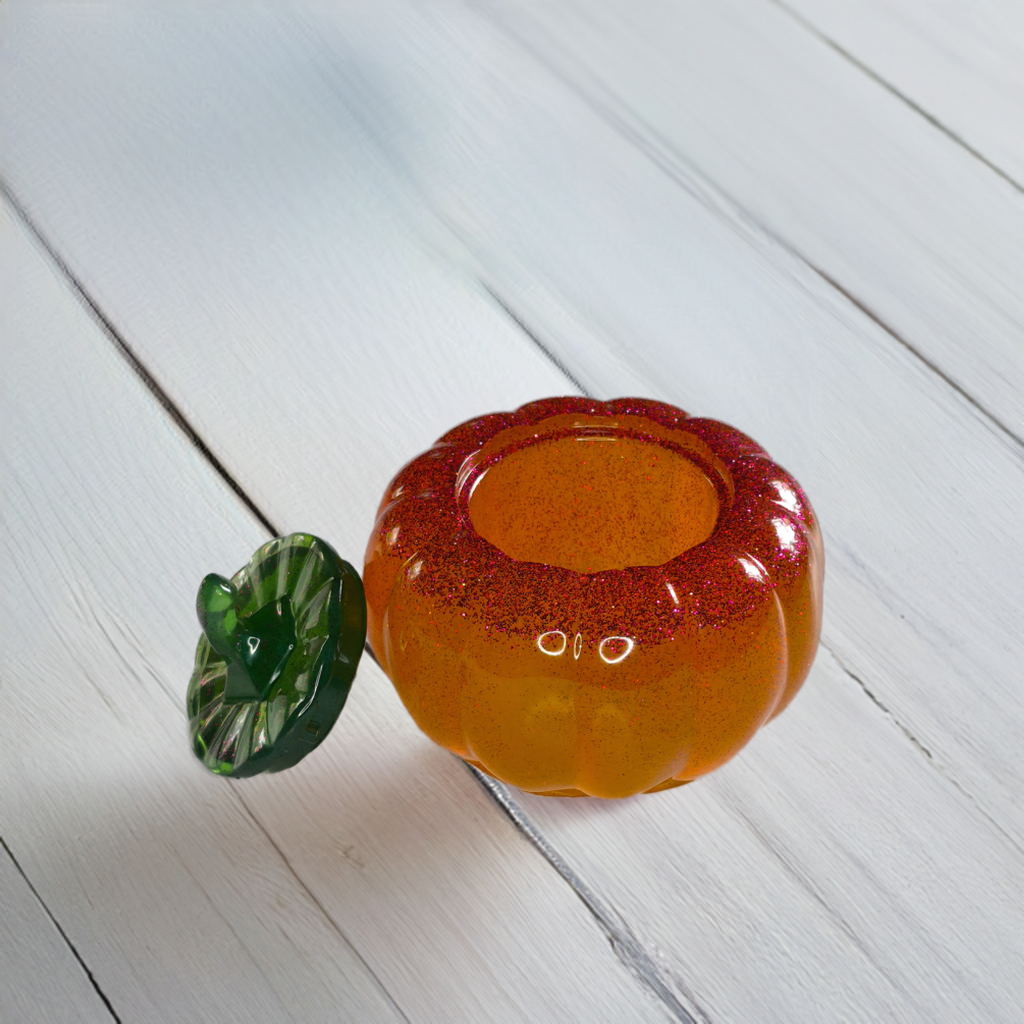 kleines Kürbisgefäß mit Deckel aus Epoxidharz